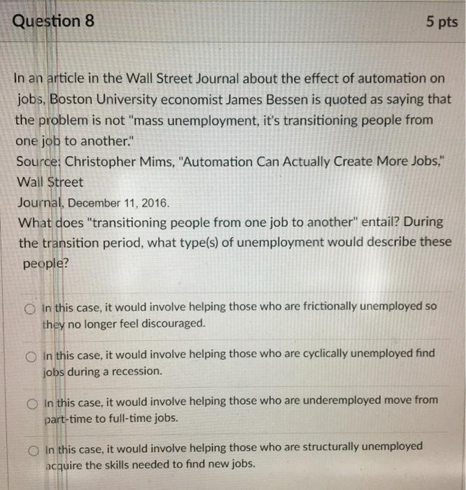Solved Question 8 5 Pts In An Article In The Wall Street Chegg Com